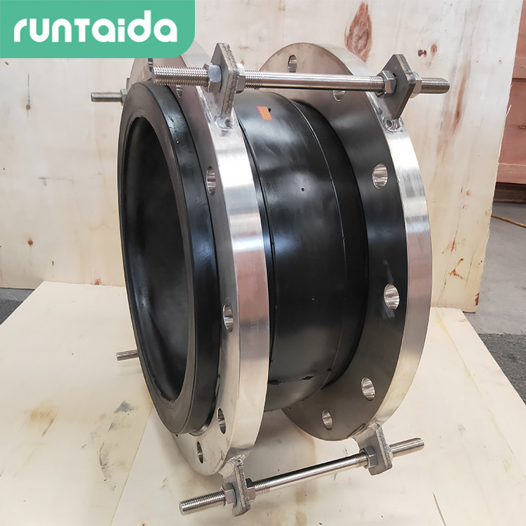 5.防拉脫限位橡膠軟接頭是在法蘭的邊緣焊接具有限位功能的耳板,上下對應(yīng),使用螺栓穿過,從而達到限位功能。